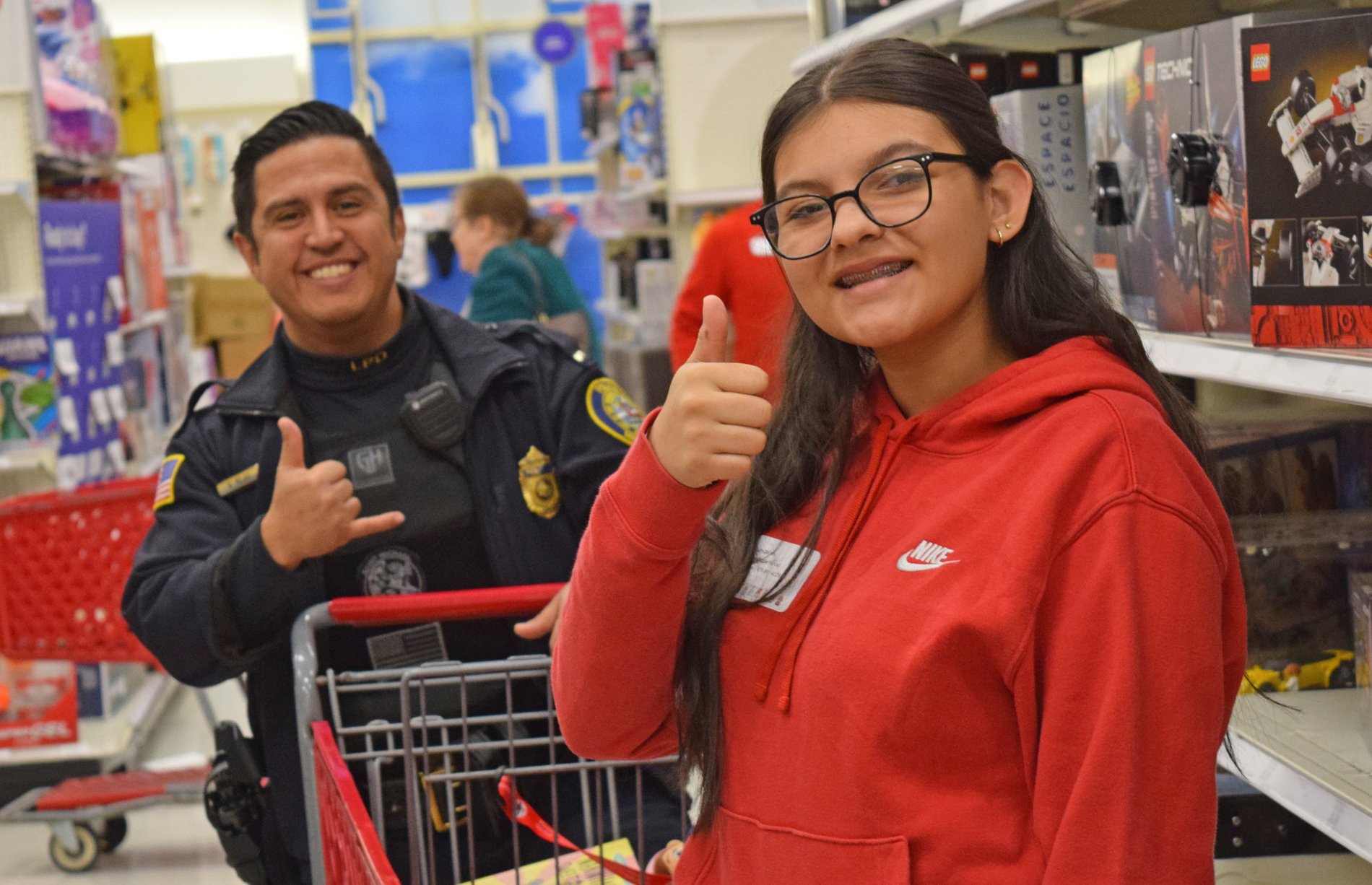 Youth were each given a $100 gift card. They were partnered with a first responder who acted as their partner and assistant while searching for gifts. There were no restrictions, aside from no gift cards, on what kids could buy or whether they had to shop for themselves or friends and family.
