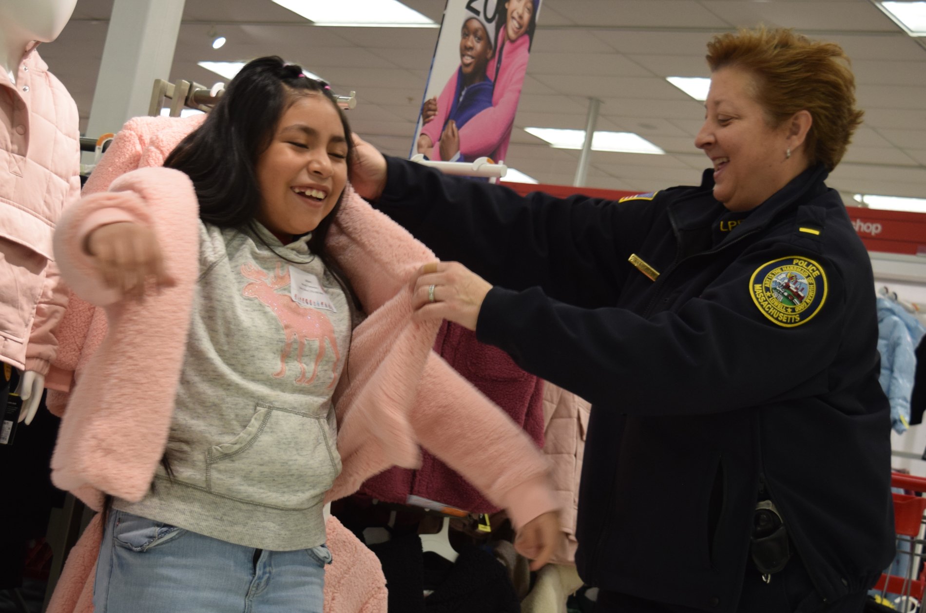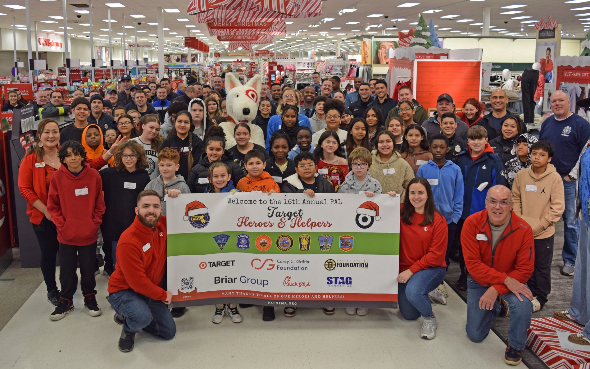 Target provided $2,500 in grant funding, via the Greater Lowell Community Foundation, to give 25 Lowell youth gift cards to go Christmas shopping. The Police Activities League (PAL) of Massachusetts donated an additional $7,500 to buy gift cards for 75 more youth, bringing this year’s total number of child shoppers to 100.