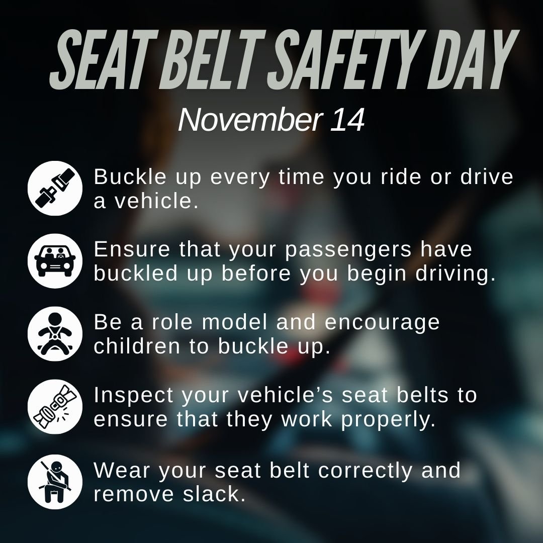For additional safety tips and more information on National Seat Belt Day, visit the NHTSA: https://www.nhtsa.gov/vehicle-safety/seat-belts.