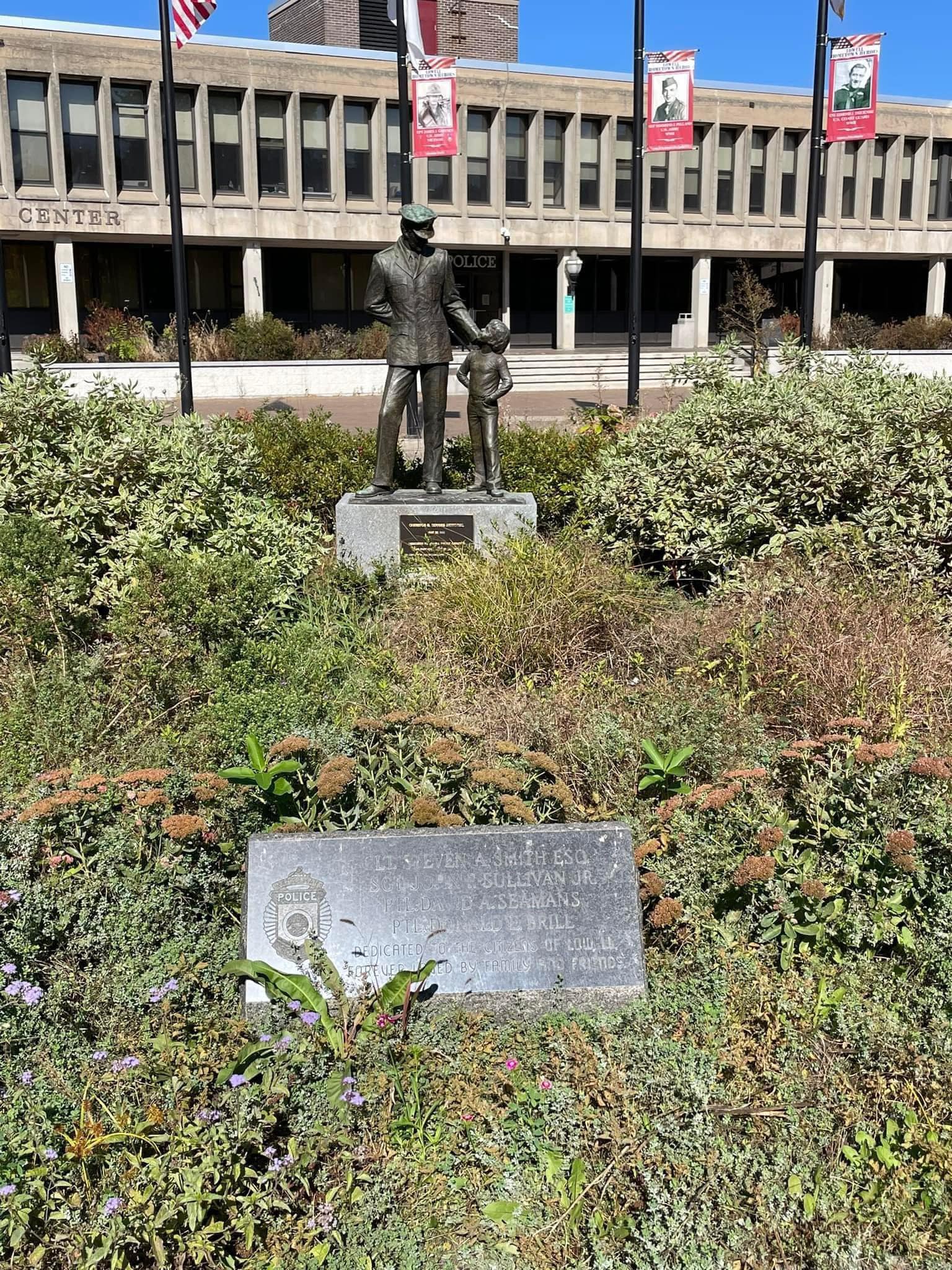 The memorials include a statue honoring Officer Christos G. Rouses, as well as a memorial honoring those who lost their lives in an Oct. 20, 1996 plane crash in Canada. Retired Lowell Sgt. John F. Sullivan Jr.; Lowell Capt. Steven Smith; Lowell Patrolman Donald Brill; Lowell Patrolman David Seamans; and North Reading Officer Robert Marchionda were among eight men who lost their lives in the crash on Oct. 20, 1996, in what is commonly referred to as the darkest day in the history of the Lowell Police Department.