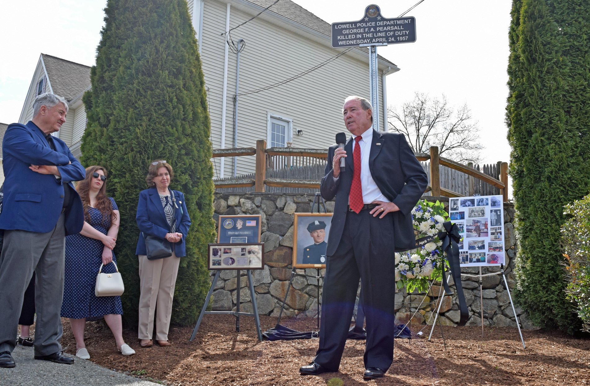 LOWELL — The Lowell Police Department was joined by family members on Thursday to dedicate a memorial Hero Sign to Officer George F.A. Pearsall, who gave his life in the line of duty in 1957.