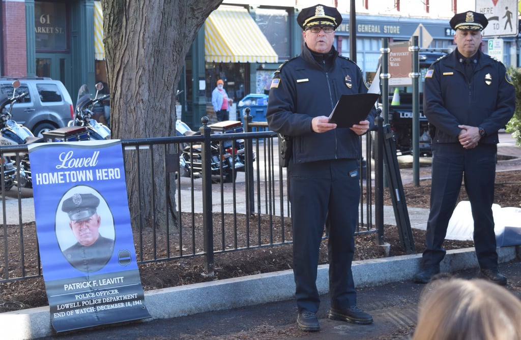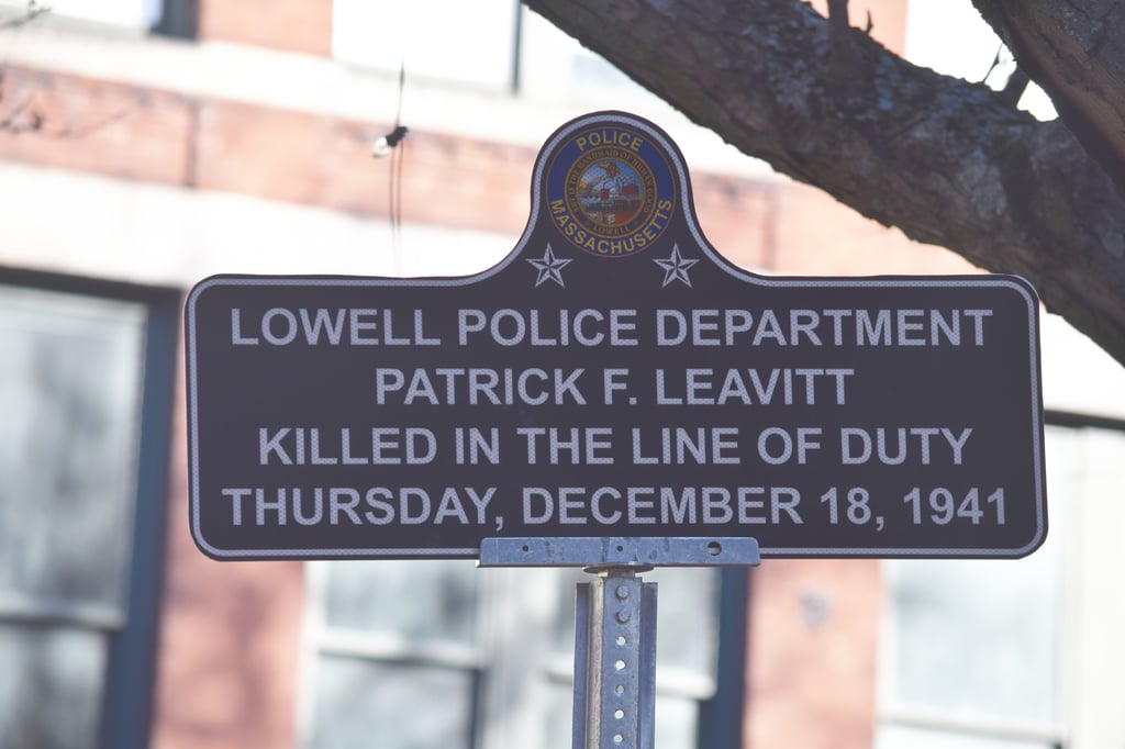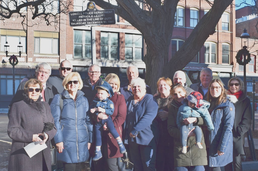 LOWELL — The Lowell Police Department was joined by family members earlier this month as they dedicated a memorial Hero Sign to Officer Patrick Leavitt, who gave his life in the line of duty on Dec. 18, 1941.