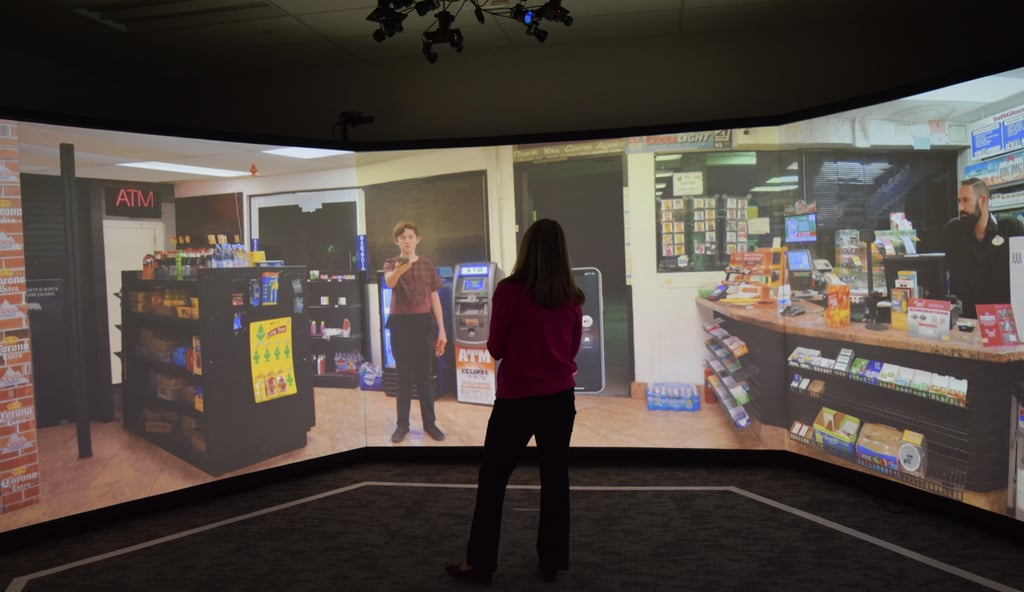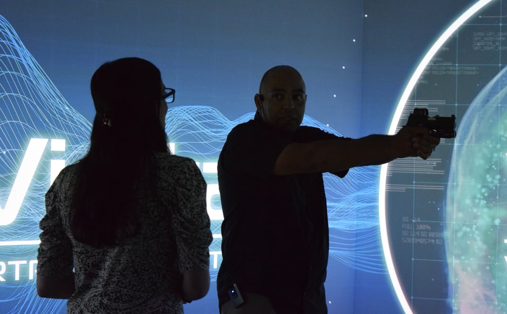 The simulator offers training modules with multiple scenarios and outcomes based on how participants interact and respond. Officers may train in a variety of virtual locations, such as movie theaters, courthouses, or even schools.